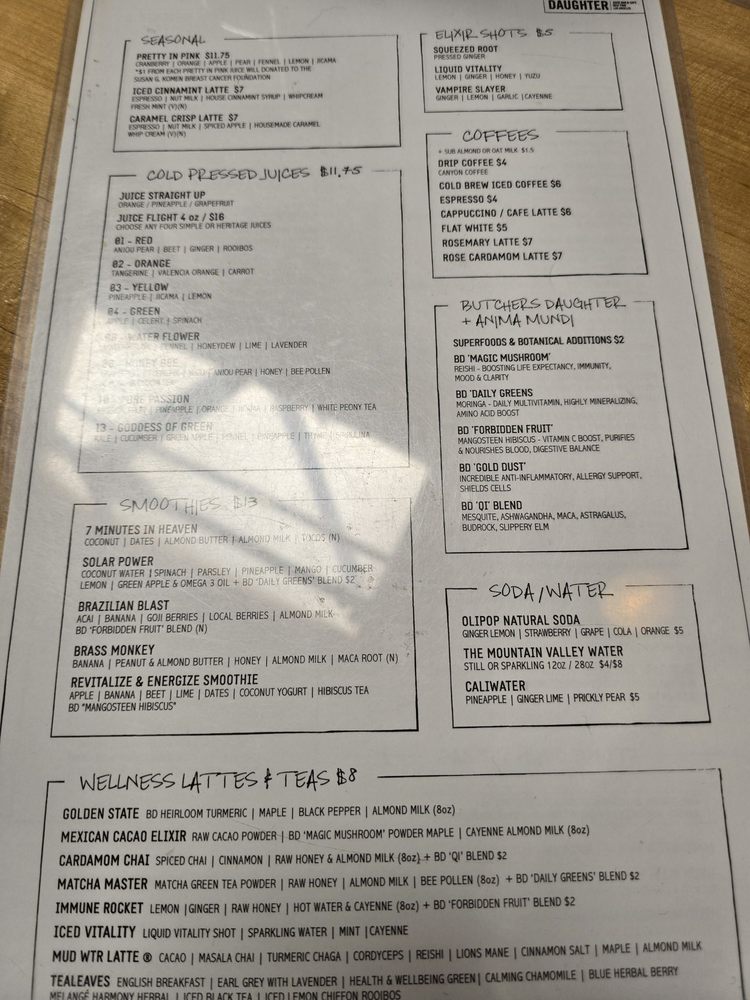 The Butcher's Daughter West Hollywood Menu (Update 2025)
